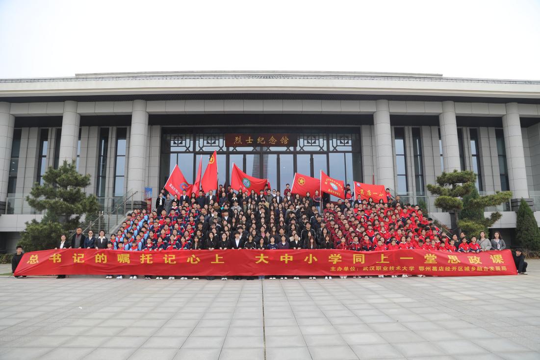 (通讯员:胡锐 摄影:王诚)4月2日,武汉职业技术大学联合葛店经开区城乡融合发展局,在鄂州革命烈士纪念园开展“总书记的嘱托记心上 大中小学同上一堂思政课”活动。活动紧扣立德树人根本任务,贯通小学、初中、高职专科和高职本科四个学段,通过敬献花篮、现场授课、经典诵读、心得交流等多元环节,以实景化、沉浸式教学推动思政教育“小课堂”与社会“大课堂”深度融合,切实将习近平总书记关于缅怀英烈的重要论述转化为铸魂育人的生动实践。校地相关负责人及师生代表近400人参加活动。